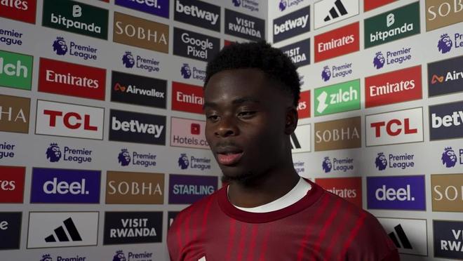 在英超第16轮主场2-1击败狼队之后,阿森纳前锋萨卡接受了来自俱乐部官方的采访。